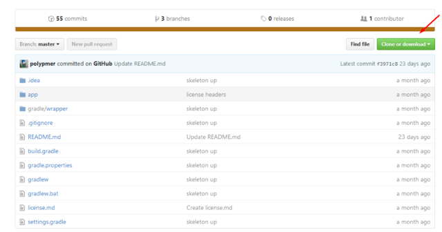 بعد ذلك سوف يتم الإنتقال بك مباشرة إلى صفحة تحميل الكود سورس الخاص بالتطبيق و ما عليك سوى النقر على ايقونة التحميل باللون الأخضر و الشروع في الإستفادة من التطبيق عبر إضافته إلى برنامج eclipse و التعديل عليه حسب رغبتك الخاصة ، و إلى هنا تنتهي هذه التدوينة التي نتمنى أن تكون قد افادتك و التي ندعوك إلى مشاركتها مع اصدقائك عبر النقر على أزرار المشاركة في الشكات الإجتماعية .